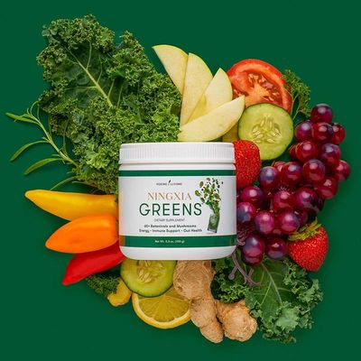 Meet our mushroom, fruit, and vegetable powder, NingXia Greens: a one-scoop solution to health and wellness. With NingXia Greens, getting your daily dose of fruits and greens is as simple as scooping our superfood powder into your favorite drink. Add 1 scoop to your daily smoothie, juice, protein shakes, or even water for a quick and easy way to get your nutrients!